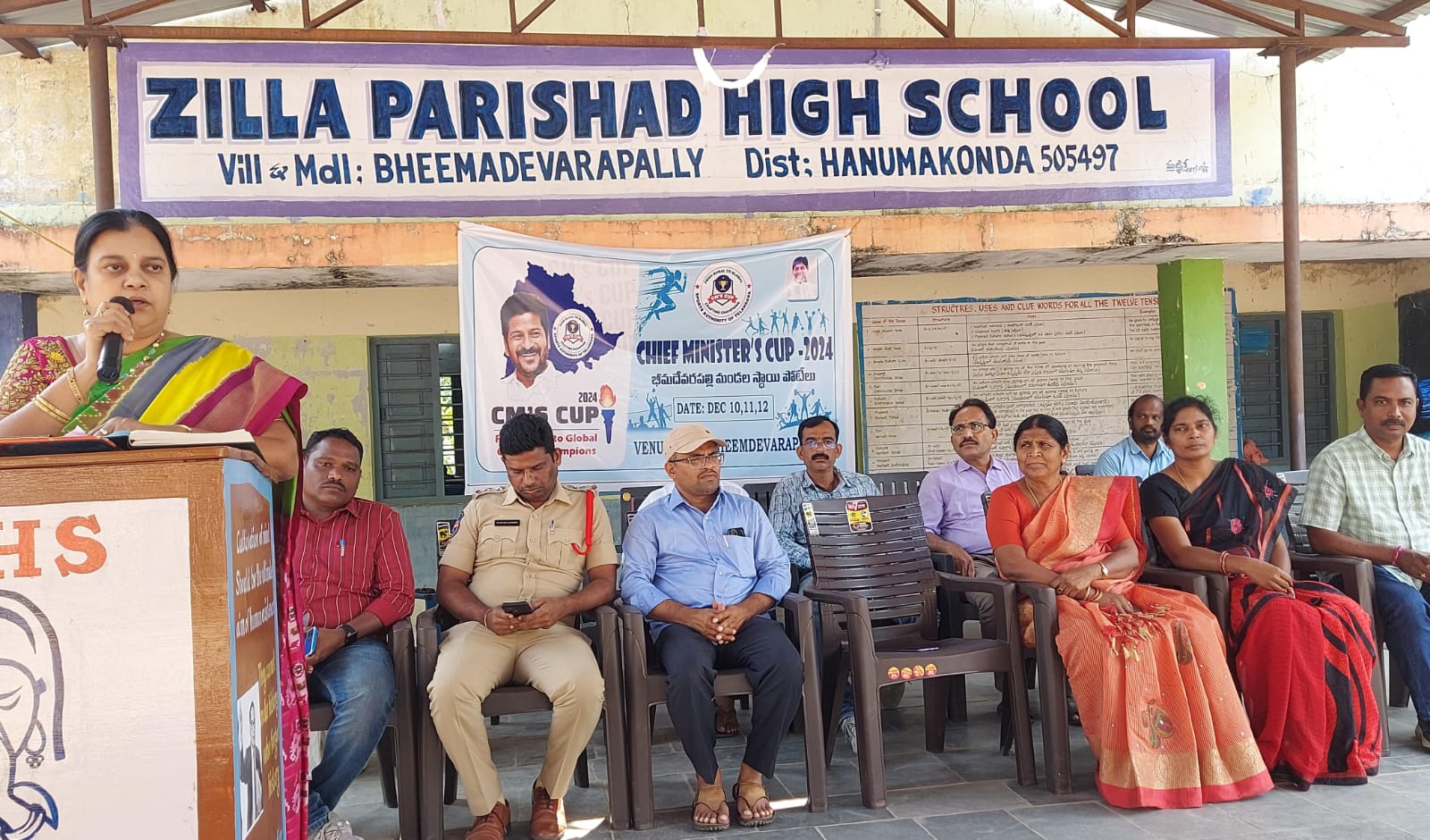 భీమదేవరపల్లి జిల్లా పరిషత్ ఉన్నత పాఠశాల క్రీడా మైదానంలో రెండు రోజులపాటు నిర్వహిస్తున్న సీఎం కప్ -2024 మండల స్థాయి క్రీడా పోటీలను హనుమకొండ జిల్లా పరిషత్ సీఈవో విద్యాలత ప్రారంభించారు. తెలంగాణ స్పోర్ట్స్ అథారిటీ ఆధ్వర్యంలో స్థానిక ఎంపీడీవో వీరేశం కన్వీనర్ గా మండలంలో ని వివిధ గ్రామపంచాయతీల పరిధిలో కబడ్డీ, కోకో, వాలీబాల్ , యోగా మరియు అథ్లెటిక్స్ క్రీడలు నిర్వహించారు. గ్రామస్థాయి పోటీలలో ప్రతిభ కనబరిచిన క్రీడాకారులు జిల్లా స్థాయిలో పాల్గొనుటకు మండల కేంద్రంలో ఈ పోటీలు నిర్వహిస్తున్నారు.