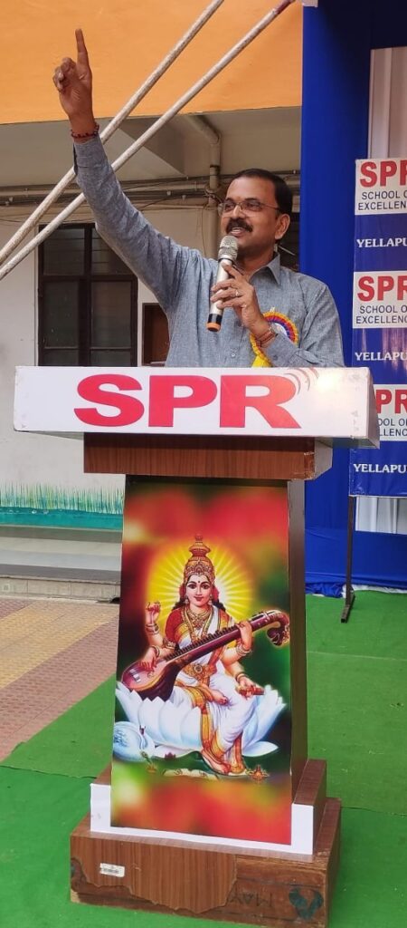 ప్రధానోపాధ్యాయులు శేషగిరి రావు మాట్లాడుతూ విద్యార్థి ప్రపంచాన్ని సైతం జయించేలాగా ఎదగాలన్నారు. పాఠశాల ఉపాధ్యాయులు మండల కాళిదాసు రచన “మినుగురు దీపాలు “కవితా సప్పుడు పుస్తకాన్ని జెడి లక్ష్మీనారాయణ ఆవిష్కరించడం జరిగింది. నీటిలో ఆల్ ఇండియా రెండవ ర్యాంకు సాధించిన, ఎస్పిఆర్ పాఠశాల పూర్వ విద్యార్థి శ్రీ రామ్ నాయక్ ను ఈ సందర్భంగా సన్మానించడం జరిగింది.ఈ కార్యక్రమంలో విద్యార్థిని విద్యార్థులు ఉపాధ్యాయులు, ఉపాధ్యాయులు, తదితరులు ,పాల్గొన్నారు.